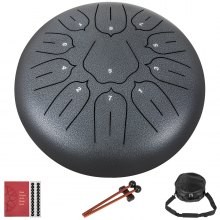 Tambor de lengua de acero VEVOR, 11 notas, 10 pulgadas de diámetro, tambor de lengua, color de pistola, tambor de mano, notas,